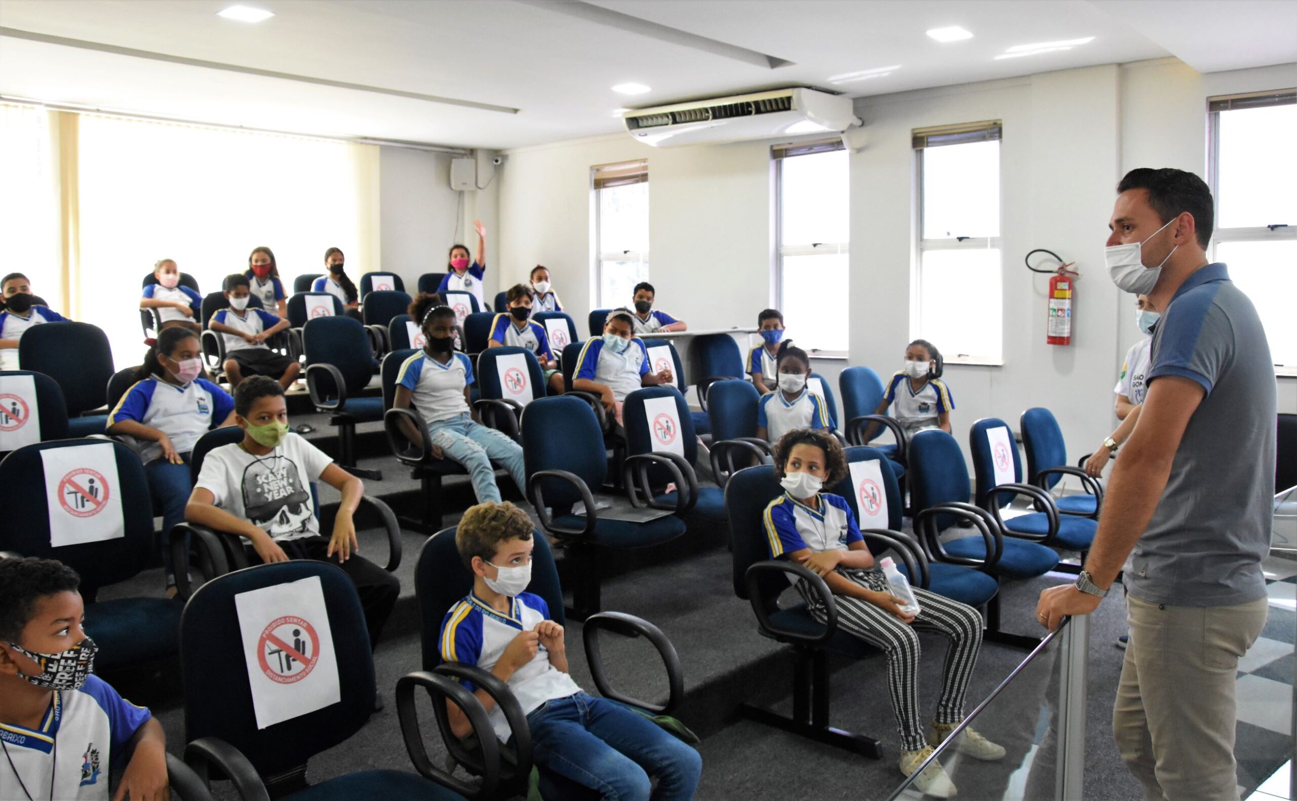 Na última sexta-feira (3), os alunos do 5º ano da Escola Municipal de Tempo Integral Ioleide Aparecida Pessoa Araújo (localizada no Bairro Recreio), visitaram a Câmara Municipal de São Gonçalo do Rio Abaixo. Acompanhados pelos professores Lurdinha Moreira e Dely de Assis Santos, os estudantes foram recepcionados pelo Presidente da Casa, vereador Diego José Ribeiro (PDT), que explicou o papel dos vereadores e os serviços prestados pela Câmara à população.