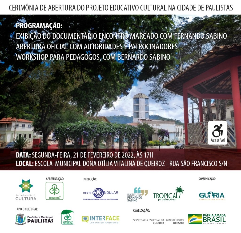 Dando início às atividades, os municípios de Paulistas e Sabinópolis receberão o projeto cultural “Encontro Marcado com Fernando Sabino”, após alinhamento com as Prefeituras e Secretarias de Educação.