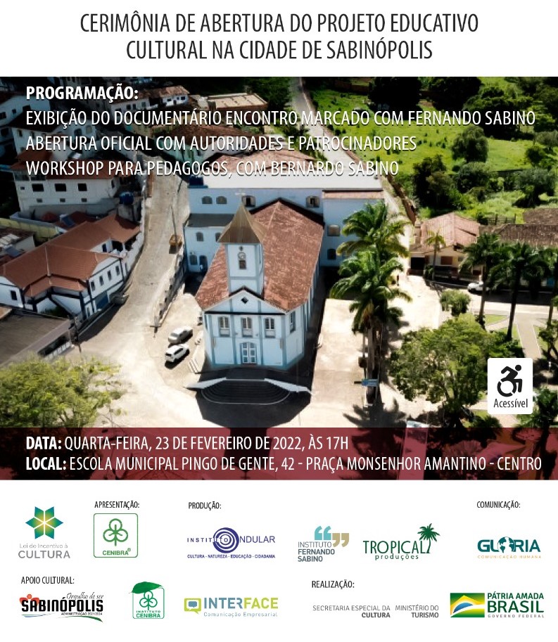 O Projeto “Encontro Marcado com Fernando Sabino” é patrocinado pela CENIBRA, por meio da Lei Federal de Incentivo à Cultura e realizado pelo Instituto Ondular, com o apoio do Instituto CENIBRA.