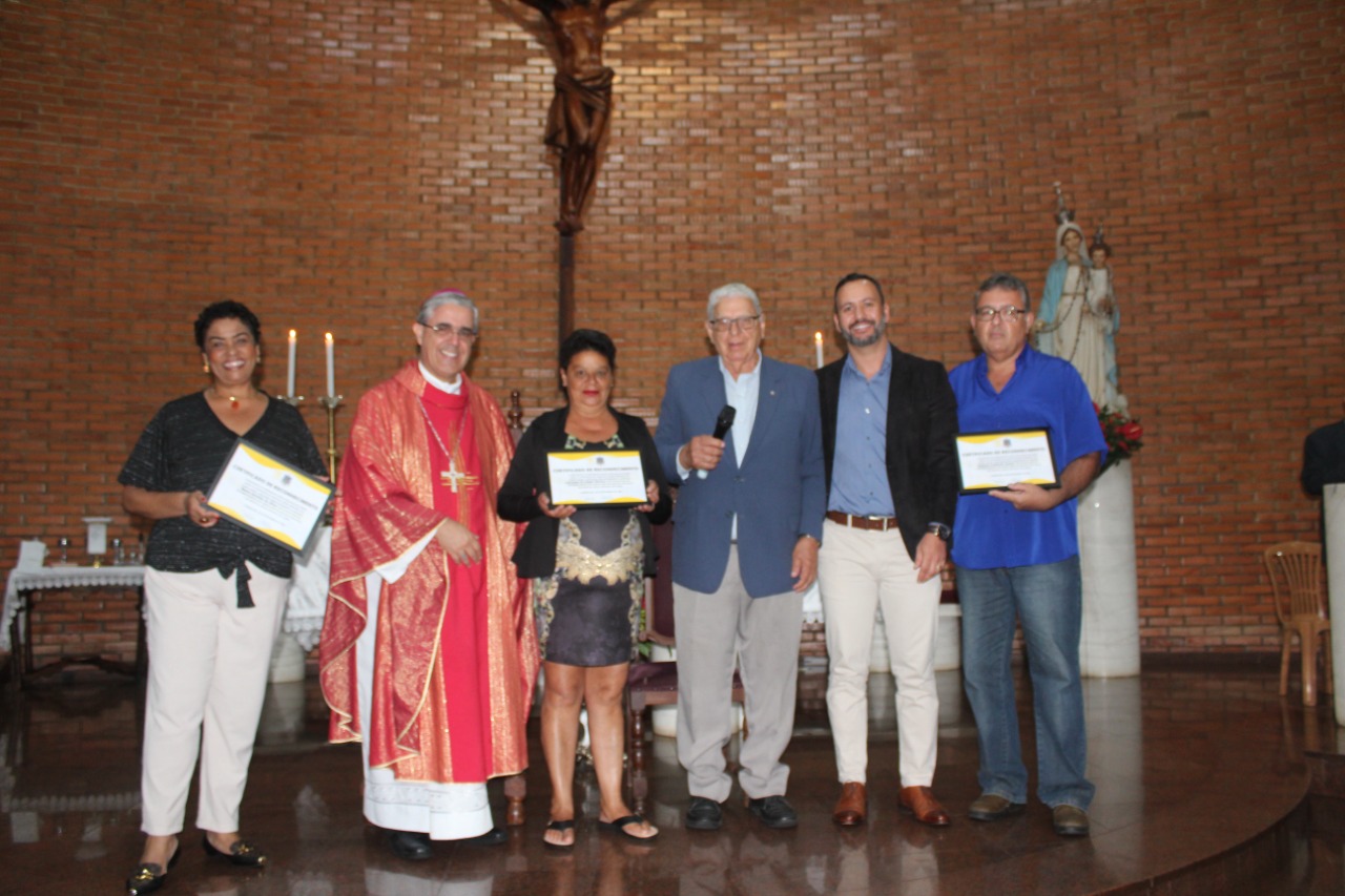 Em seguida, foram entregues as comendas de mérito. Os laureados foram o advogado, procurador do Estado de Minas Gerais e assessor jurídico da Diocese Itabira-Coronel Fabriciano, Tiago Anildo Pereira, e o engenheiro elétrico itabirano, Renato Macedo Cerceau. Dom Marco Aurélio ressaltou que ambos vem realizando relevantes trabalhos voluntários junto à Diocese e ao hospital, respectivamente.
