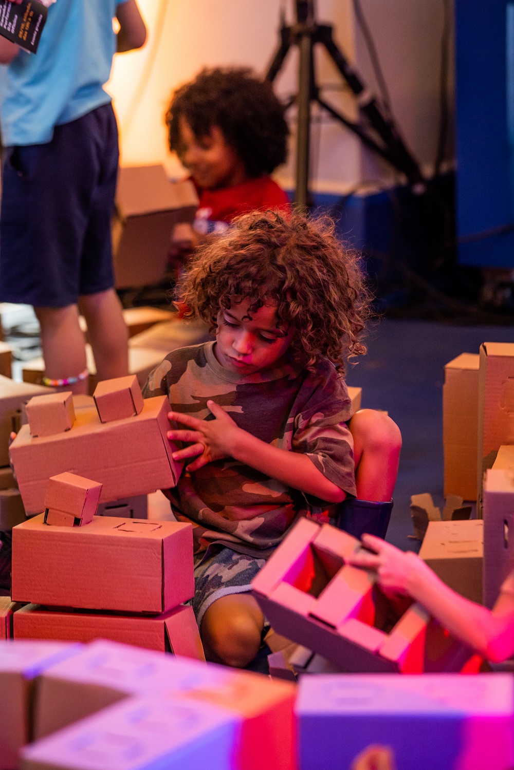 Utilizando papelão, a MOBRI ensinará como construir esculturas e brinquedos, usando muita imaginação, sem necessidade de pilhas nem outros dispositivos eletrônicos. Basta usar raciocínio, criatividade e imaginação para começar a brincadeira.