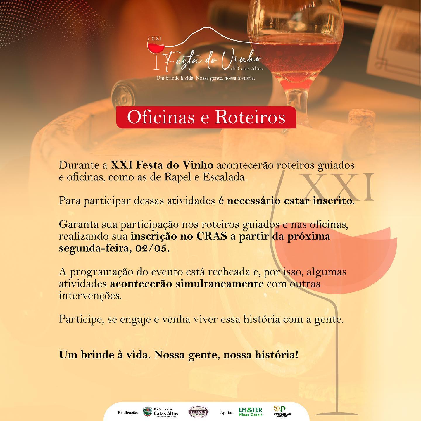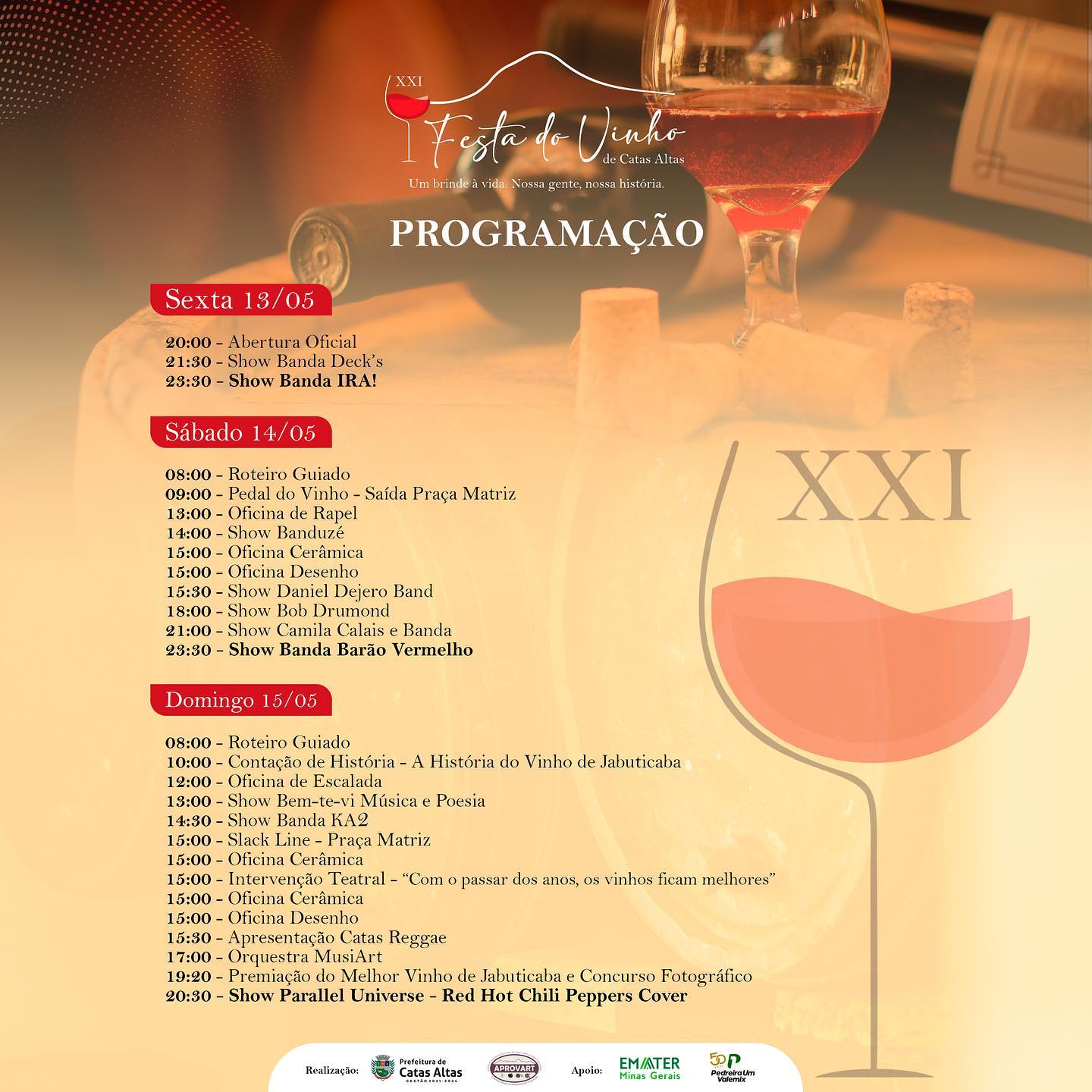 Uma programação recheada e muito especial para agradar todos os presentes na XXI Festa do Vinho de Catas Altas.