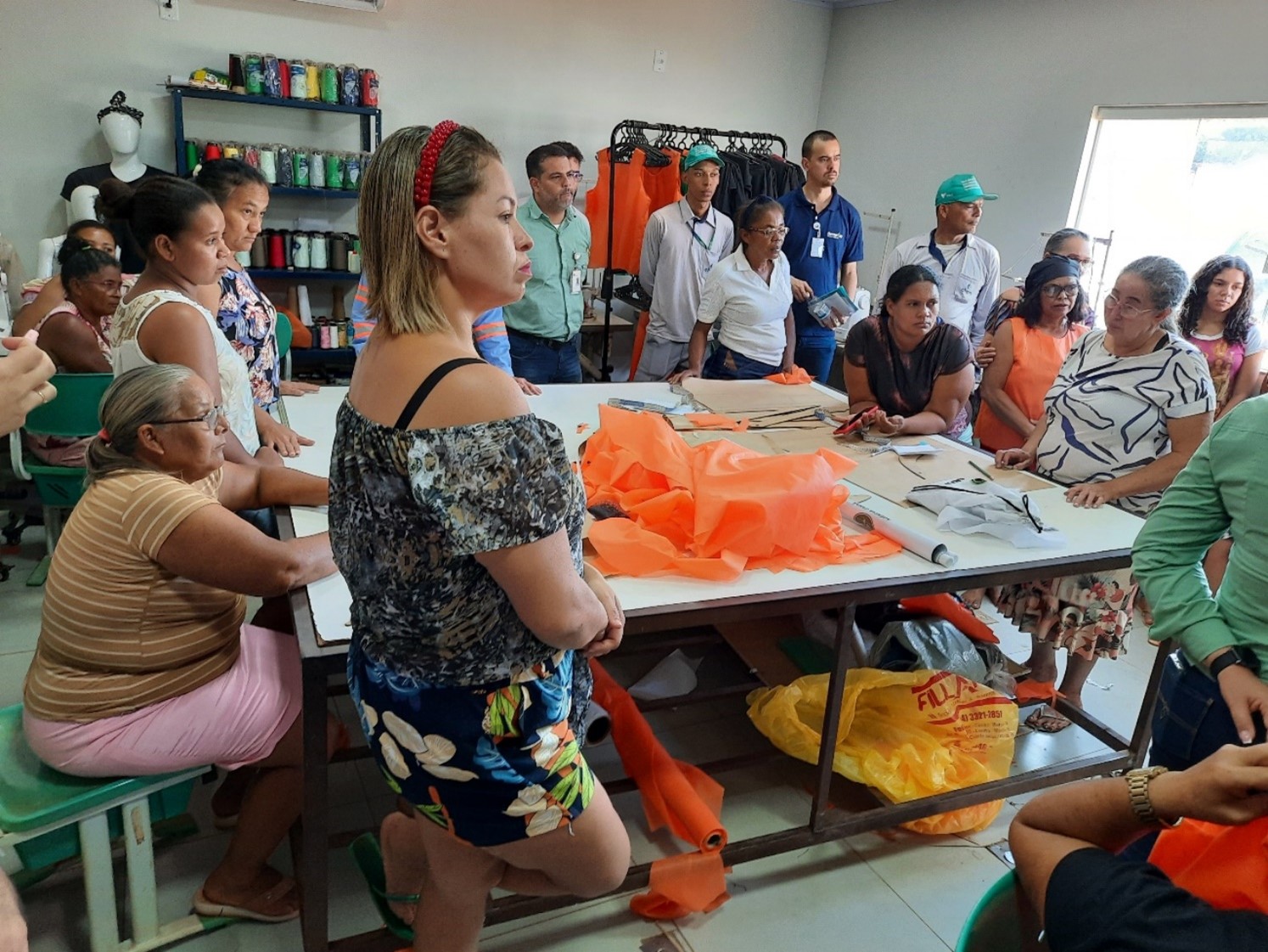 Alunas durante a aula no do curso de Corte e Costura em Canaã dos Carajás (PA). Créditos: Construtora Barbosa Mello.
