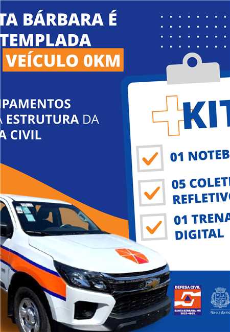 A Defesa Civil de Santa Bárbara está entre os 479 municípios mineiros, que foram contemplados para receber o kit da defesa civil, conforme informação da Coordenadoria Estadual de Defesa Civil (Cedec).